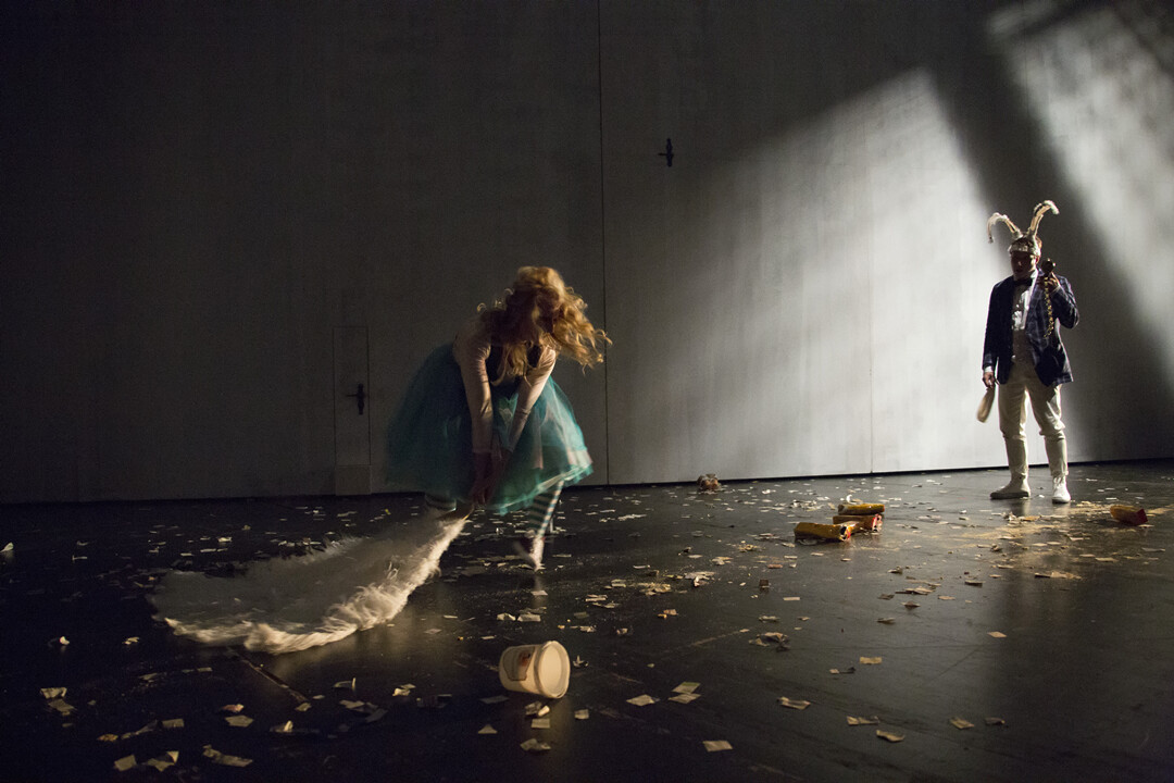 One sleepy afternoon, Alice suddenly starts to sink deeper and deeper into an opening in the ground – alternately growing and shrinking. Everything around her in Wonderland seems so strange that Alice is moved to cry a whole sea of tears. Could it be that she was mixed up overnight with somebody else? Not only the white rabbit and the hat-maker, who seems to be stuck in a perpetual five o’clock tea party, appear crazy to Alice: In addition, incorrect words have crept into the songs and nobody can really trust the numbers. But everybody who disobeys the rules will be beheaded by the Queen. Until Alice suddenly and automatically and without any additional help of cake or syrup starts to grow again...