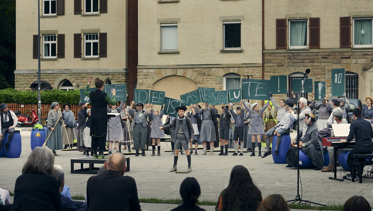 A local choir, consisting of various people of all ages, sings, performs and narrates stories of tragedies, sewers and the supply of fresh water. They tell us about the nature of the town and cool water, about concrete surfaces and water reservoirs. Above all, the stories tell us about urban planning and the happy or unhappy course of water and of events.