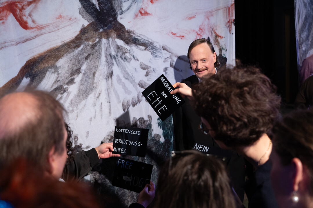 Rise or Fall is the interactive live music game show with a V-effect! Find your way into an ideal society with other players. Or maybe you just want to dust off the highest place on the winner's podium? Ulrike Theusner's spatial installation Tanz auf dem Vulkan (Dance on the Volcano) transforms into a show stage: Framed and accompanied by Philip Venables' game show music, which the ten-piece show orchestra has in store for you, you will be accompanied through the evening by our game master Luis Hergón. In groups, you will play out laws, conventions, (game) rules and (nightmare) dreams of possible coexistence in entertaining and "challenging" mini-games. The best company wins! Or is it just the biggest companion?