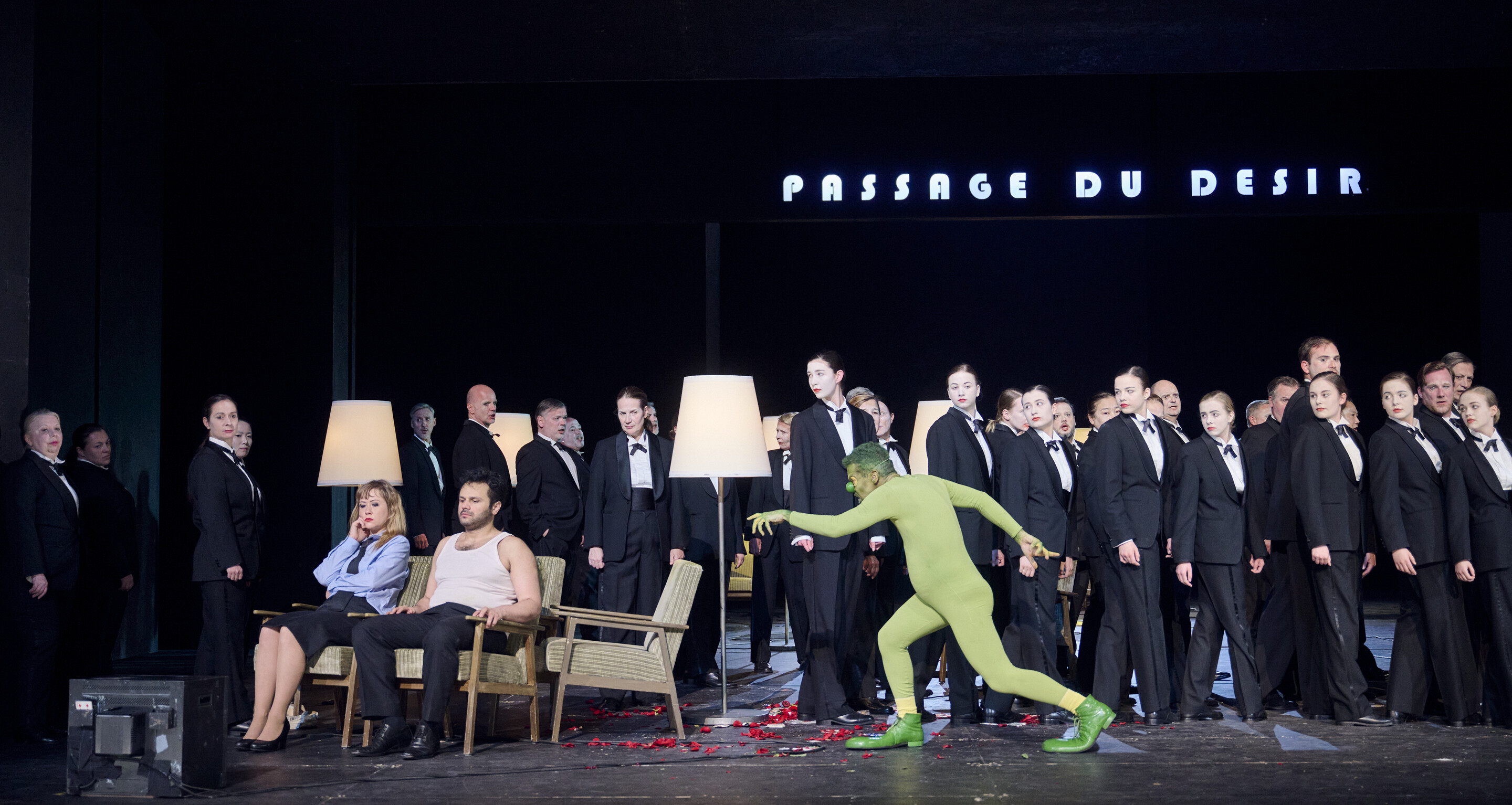 In der Stuttgarter Inszenierung dreht die immer wiederkehrende Carmen, dank ihrer subversiven Dominanz, an der psychologischen Schraube der Heimsuchung – bis sie sich in eine lustvolle Obsession verwandelt. Es ist Alain Satge, der feststellte, dass die Oper aus einer Folge von Beginnen (,opera des recommencements') besteht. Bis zur Habanera zum Beispiel wohnt man verschiedenen Eröffnungen bei: Chor der Soldaten mit Intermezzo Micaela-Morales, Chor der Gassenjungen, Chor der jungen Liebhaber, Chor der Fabrikarbeiterinnen – dies alles eine Serie von Präparationen, die den Denk- und Handlungsraum definieren, in dem Carmen schließlich agieren wird. Den Atem der Freiheit, den dieser rebellische Vogel ausatmet, ist wie die Trikolore, die die Muse bei Delacroix auf den Barrikaden vor sich hin trägt.