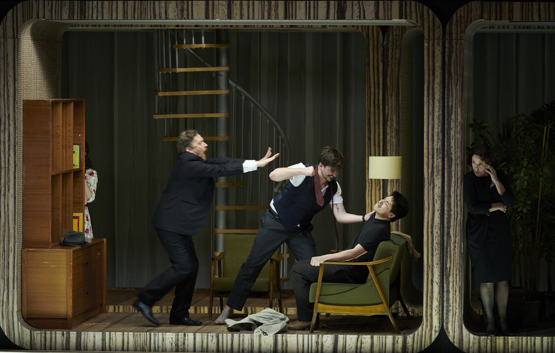 „Das Ideal lebenslanger Monogamie ist ein relativ junges Konzept in der Menschheitsgeschichte … Ein Teil dieses Mythos ist der Glaube, dass man, wenn man wirklich verliebt ist, automatisch alles Interesse an Anderen verliert“, klären die Autorinnen eines aktuellen Polyamorie-Ratgebers mit dem verwegenen Titel The ethical Slut auf. Weniger praktisch gedacht aber beunruhigender in ihrer Ambivalenz ist die Lektion, die zwei junge Paare in Mozarts Verwechslungsspiel erfahren: große Gefühle fühlen sich immer echt an, beim „richtigen“ wie beim „falschen“ Partner. Eingefädelt vom abgeklärten Philosophen Alfonso (Georg Nigl) und der lebenserfahrenen Despina (Catriona Smith) sorgt dieser Partnertausch abwechselnd für Desillusionierung und Verzauberung.
